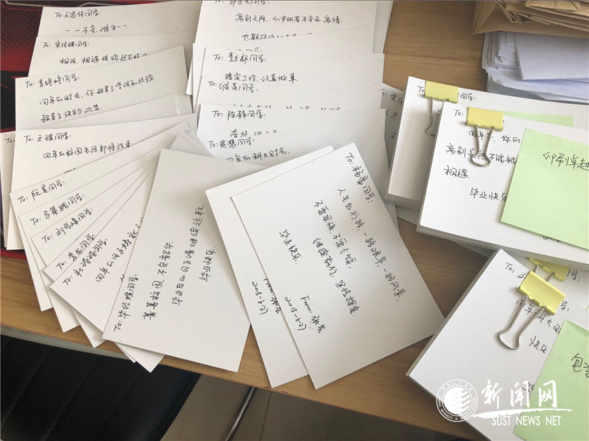 6月29日,在畢業(yè)生即將離校奔赴工作崗位之際,輕工學院畢業(yè)班輔導員分別用自己的方式為畢業(yè)生送去最真摯的祝福。印刷、包裝、非織造專業(yè)的輔導員張蕓通過明信片的形式,親手為自己所帶的187名畢業(yè)生寫下美好祝福,造紙、皮革專業(yè)的輔導員麻力為自己所帶的365名學生寫下真摯的臨別贈言,全文共計1385字,字字飽含真情,催人淚下。