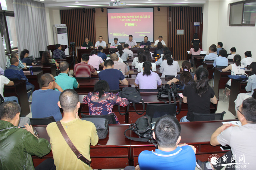 陜西省職業(yè)院校教師素質(zhì)提高計劃2017年度國培項目開班儀式于7月3日在我校教育學(xué)院舉行。陜西省教育廳副巡視員韓忠誠出席并講話。我校機電工程學(xué)院黨委書記夏祥林,電氣與信息工程學(xué)院副院長(主持工作)湯偉,教育學(xué)院院長劉正安、副院長李煥朝,來自相關(guān)專業(yè)學(xué)院的項目負(fù)責(zé)人、班主任以及70余名學(xué)員參加了此次儀式。儀式由教育學(xué)院黨委書記王貴平主持。