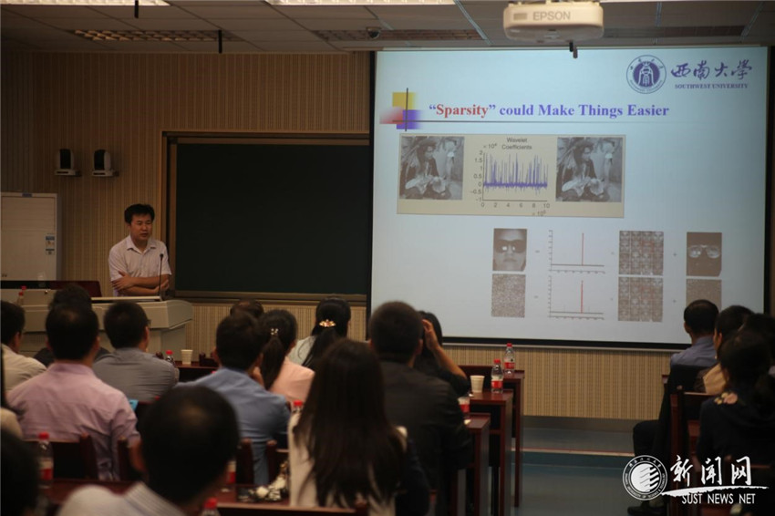 研討會(huì)于9月22日上午在電信學(xué)院2B-211報(bào)告廳開(kāi)幕,電信學(xué)院相關(guān)班子成員在開(kāi)幕致辭中向參會(huì)的各位專家表示了由衷的感謝,并倡議青年教師和研究生充分利用好這次學(xué)習(xí)和交流的機(jī)會(huì)。研討會(huì)分為學(xué)術(shù)報(bào)告和專題研討兩部分。來(lái)自西南大學(xué)的王建軍教授和西安電子科技大學(xué)的馮象初教授分別進(jìn)行了90分鐘的學(xué)術(shù)報(bào)告,王建軍教授梳理了他的團(tuán)隊(duì)在高維數(shù)據(jù)稀疏建模理論及其應(yīng)用方面的研究成果,馮象初教授報(bào)告了國(guó)際上深度學(xué)習(xí)的數(shù)學(xué)解釋方面的最新研究進(jìn)展。此外,來(lái)自深圳大學(xué)、寧夏大學(xué)、寶雞文理學(xué)院等的專家分別報(bào)告了其團(tuán)隊(duì)過(guò)去幾年在人工智能方向的研究成果。豐富充實(shí)的報(bào)告內(nèi)容引發(fā)了大家的熱情,茶歇期間,大家就自己感興趣的問(wèn)題進(jìn)行了熱烈的討論。在9月23日的專題研討環(huán)節(jié),來(lái)訪的專家與我校師生進(jìn)行了廣泛深入的討論和交流。