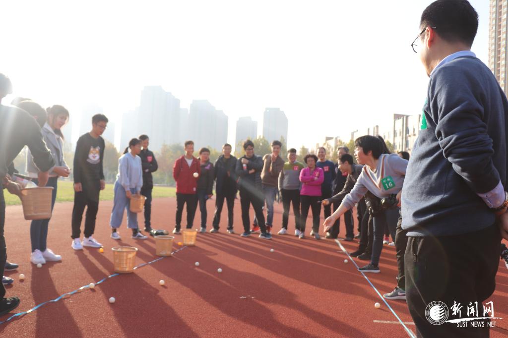 本次運動會競技性與娛樂性相結合,鼓勵教職工積極參與,充分發(fā)揚團隊合作精神,分別設置了插秧收割、跳大繩、接力投籃、吹飛乒乓球等四個集體項目,以及一分鐘跳繩、定點投球兩個單人項目。集體項目以系(室)為單位參賽,雖說是趣味為主,但項目都特別考驗團隊協(xié)作精神,體現(xiàn)了一定的對抗性。賽場上,裁判精神飽滿,有序地組織教工們進行比賽,平日辛勤工作的教工們積極踴躍,個個斗志昂揚,磨拳擦掌,信心滿滿。比賽中老師們互相鼓勵、配合默契,歡呼聲、喝彩聲、加油聲此起彼伏,歡樂的氣氛和初冬的暖陽讓整個運動場變得活力四射。