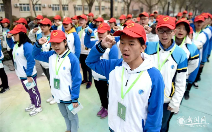 校團委副書記李鵬、區(qū)治污減霾辦主任李衛(wèi)華先后致辭,陜西樂怡醫(yī)療科技有限公司董事長雷麗娟向大學生志愿團隊捐贈防霧霾口罩,一百余名大學生宣誓加入藍天青春衛(wèi)士志愿者服務隊,為綠水青山貢獻青春力量。