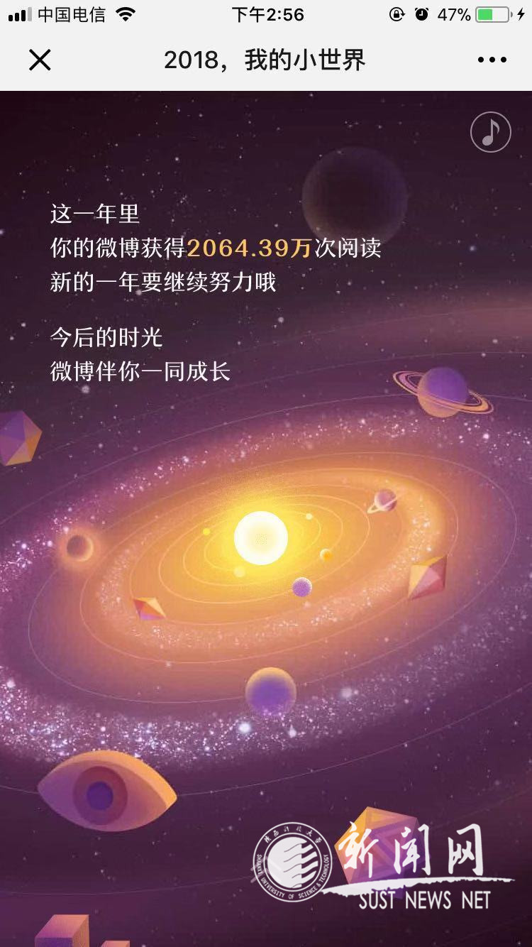 微博平臺(tái)2018年總計(jì)開啟32次視頻直播,創(chuàng)作了169條視頻,并獲得了58.84萬(wàn)+次播放??傞喿x量超過(guò)2064.39萬(wàn)次,共收獲87982次轉(zhuǎn)評(píng)贊。其中,陜西省教育廳@陜西科技大學(xué)轉(zhuǎn)發(fā)宣傳共計(jì)80次。
