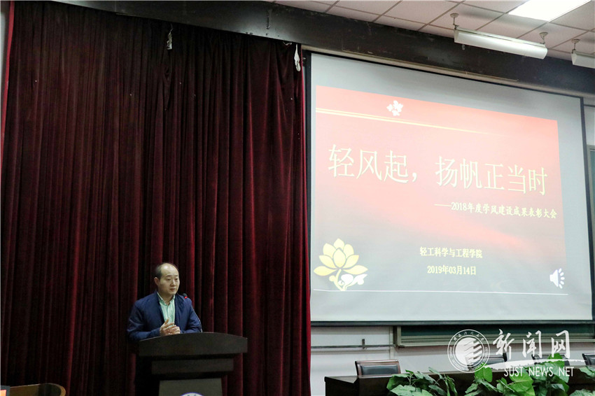 為表彰先進(jìn),樹立典型,進(jìn)一步推動(dòng)優(yōu)良學(xué)風(fēng)建設(shè),引導(dǎo)和激勵(lì)學(xué)生聚焦主業(yè)、積極進(jìn)取,以獎(jiǎng)樹標(biāo)、以獎(jiǎng)促學(xué),輕工科學(xué)與工程學(xué)院于3月14日在3號教學(xué)樓102報(bào)告廳舉辦了2018年學(xué)風(fēng)建設(shè)表彰大會(huì),輕工學(xué)院副院長張輝、學(xué)生工作負(fù)責(zé)人張乾隆、各年級輔導(dǎo)員、獲獎(jiǎng)學(xué)生代表及2018級全體學(xué)生參加會(huì)議。