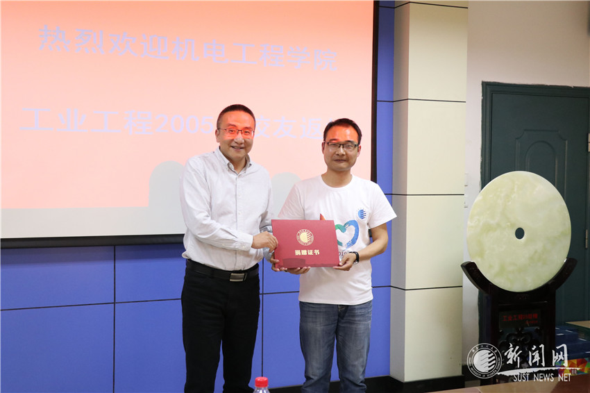 5月2日下午,機(jī)電學(xué)院黨委書記夏祥林和返校校友進(jìn)行了座談。夏祥林代表學(xué)院熱烈歡迎校友返回母校,向校友們介紹了學(xué)院學(xué)生培養(yǎng)、人才引進(jìn)、專業(yè)建設(shè)、學(xué)科發(fā)展等方面發(fā)展?fàn)顩r及最新成就,希望2005級校友以這次聚會(huì)為新的起點(diǎn),在團(tuán)聚時(shí)刻分享經(jīng)驗(yàn)、積聚力量、再次揚(yáng)帆起航,為國家和社會(huì)發(fā)展以及更美好的未來繼續(xù)奮斗。2005級輔導(dǎo)員王文娟老師在座談會(huì)上播放自制的影集回憶錄,與會(huì)校友共同回憶在校期間的大事,重溫當(dāng)年的美好時(shí)光。校友李龍代表2005級工業(yè)工程專業(yè)向?qū)W院贈(zèng)送了“和田玉璧”,祝愿學(xué)院發(fā)展蒸蒸日上。