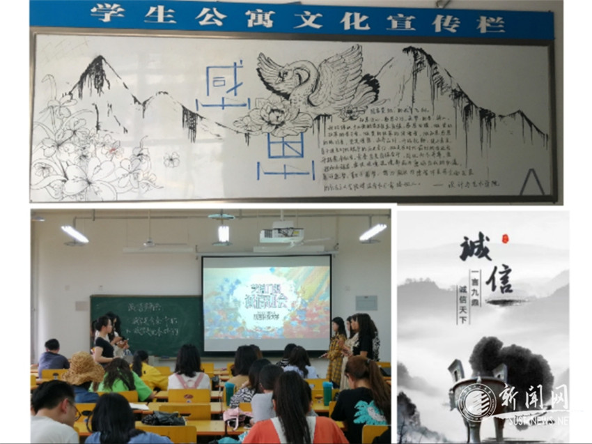 2017級(jí)、2018級(jí)各班通過(guò)開(kāi)展“誠(chéng)實(shí)守信”主題班會(huì),畢業(yè)生通過(guò)舉辦誠(chéng)信教育沙龍等形式,倡導(dǎo)契約精神,幫助學(xué)生樹立誠(chéng)信觀念。環(huán)藝學(xué)生黨支部承辦“誠(chéng)實(shí)守信”原創(chuàng)海報(bào)設(shè)計(jì)大賽,活動(dòng)共收到23幅海報(bào)設(shè)計(jì)作品,累計(jì)網(wǎng)絡(luò)投票4828票,引發(fā)學(xué)生參與和討論熱情。學(xué)院在sust設(shè)藝青年官微和易班發(fā)布《知恩于心,感恩于行》主題網(wǎng)文,向全院受助學(xué)生發(fā)出倡議,鼓勵(lì)受助學(xué)生積極參與公益活動(dòng)和社會(huì)實(shí)踐,用實(shí)際行動(dòng)感恩社會(huì)、回饋母校。同時(shí),學(xué)院組織受助學(xué)生于學(xué)生四公寓大廳繪制“誠(chéng)信?感恩”公寓文化宣傳板報(bào),引導(dǎo)廣大學(xué)生自立自強(qiáng)、感恩回饋,做資助政策的學(xué)習(xí)者和傳播者,做知恩感恩的踐行者。