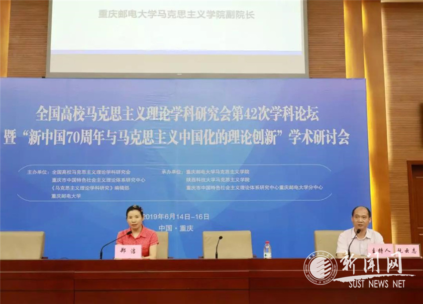 6月15日,全國(guó)高校馬克思主義理論學(xué)科研究會(huì)第42次學(xué)科論壇暨“新中國(guó)70周年與馬克思主義中國(guó)化的理論創(chuàng)新”學(xué)術(shù)研討會(huì)在重慶郵電大學(xué)舉行。本次研討會(huì)由全國(guó)高校馬克思主義理論學(xué)科研究會(huì)、重慶市中國(guó)特色社會(huì)主義理論體系研究中心、《馬克思主義理論學(xué)科研究》編輯部和重慶郵電大學(xué)聯(lián)合主辦,重慶郵電大學(xué)馬克思主義學(xué)院、陜西科技大學(xué)馬克思主義學(xué)院、重慶市中國(guó)特色社會(huì)主義理論體系研究中心重慶郵電大學(xué)分中心聯(lián)合承辦。