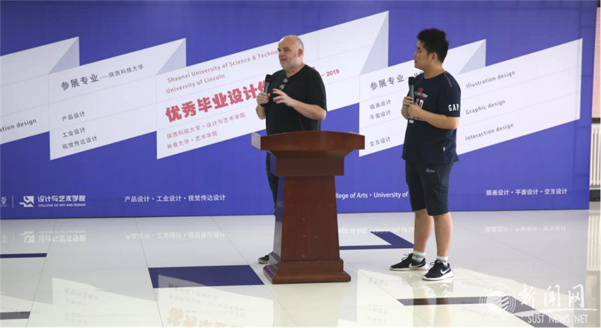 Dave Bramston首先感謝設(shè)藝學(xué)院提供本次藝術(shù)交流的機(jī)會。他表示,這是他第一次到訪陜西科技大學(xué),對我校學(xué)生的作品非常感興趣,希望能達(dá)到深度交流。本次中英大學(xué)生藝術(shù)作品展開啟了雙方藝術(shù)交流的新篇章。林肯大學(xué)學(xué)生的作品體現(xiàn)了英國本土的文化特色,希望雙方學(xué)生通過本次交流,迸發(fā)出新的藝術(shù)火花。