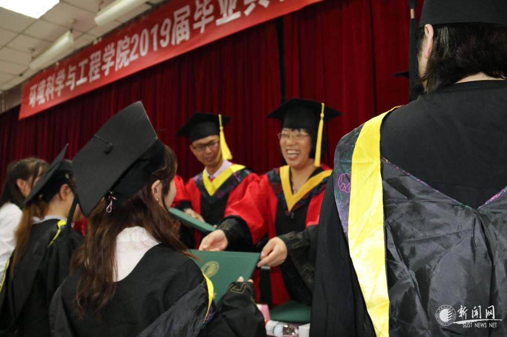 不說再見,青春起航。26日上午,學(xué)院在教三101隆重舉行2019屆畢業(yè)典禮暨學(xué)位授予儀式。副院長李成濤宣讀了2019屆畢業(yè)生學(xué)位授予決定、優(yōu)秀畢業(yè)論文評選結(jié)果和關(guān)于表彰學(xué)院2019屆優(yōu)秀畢業(yè)生、優(yōu)秀學(xué)生干部的決定。院長馬宏瑞代表全體教師親切致辭,勉勵(lì)畢業(yè)生始終秉持科大精神,牢記“至誠至博”校訓(xùn),在更廣闊的天地追求卓越,書寫屬于自己的精彩人生,并為2019屆校友聯(lián)絡(luò)員頒發(fā)聘書。校友代表宋輝輝分享了作為一名“環(huán)境人”的成長歷程,祝福畢業(yè)生不斷前進(jìn),不斷成長。教師代表朱超以幽默的發(fā)言寄語同學(xué)們,要腳踏實(shí)地,仰望星空,在適應(yīng)變化的同時(shí)將變化轉(zhuǎn)變?yōu)闄C(jī)遇。畢業(yè)生代表黨靖雯飽含深情地表達(dá)了對母校的感謝和祝福,表示全體畢業(yè)生將不負(fù)期望,不畏艱難,無論身處何處要繼續(xù)發(fā)光發(fā)熱。學(xué)位授予儀式結(jié)束后,畢業(yè)生代表們向全體老師獻(xiàn)花表達(dá)感恩和祝福,畢業(yè)典禮在全體師生合唱《再見》的溫馨歌聲中圓滿落幕。