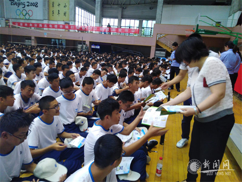 未央分局文保、經(jīng)偵、戶政、緝毒、國保、刑偵、法制大隊(duì)、分局掃黑辦及草灘派出所給新生解答關(guān)于落戶、反電信詐騙、校園貸等他們關(guān)心的問題并發(fā)放宣傳手冊2000余本、各類宣傳單3200余份,擺放宣傳展板35塊。經(jīng)偵大隊(duì)陳警官結(jié)合近年來偵辦的大量事實(shí)案例,就大學(xué)生生活中案件特點(diǎn)、形式手段、具體危害、如何防范進(jìn)行了專題講座。
