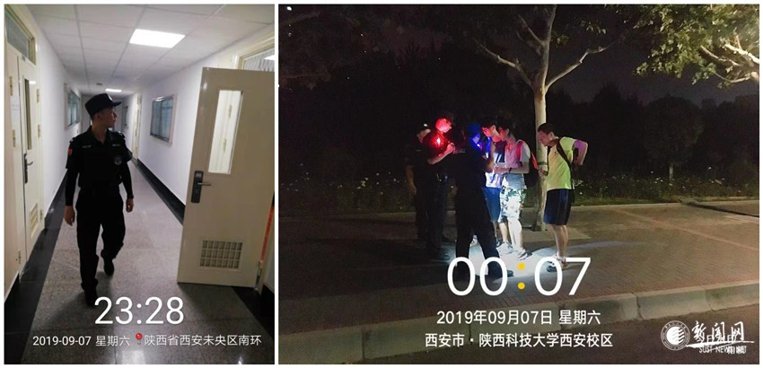 辦公樓和實(shí)驗(yàn)樓加班的老師紛紛走出大樓,門衛(wèi)也開始了一天最重要的巡樓工作。每?jī)蓚€(gè)小時(shí)在各層巡查一遍。門鎖上沒有、水龍頭關(guān)了沒有、有沒有火災(zāi)隱患……這些都是他們巡查的關(guān)鍵。