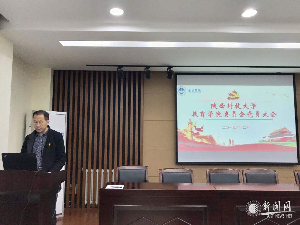 中共陜西科技大學教育學院委員會黨員大會于2019年12月25日下午召開,教育學院全體黨員參加了大會。大會由院長助理蔡國敏同志主持。