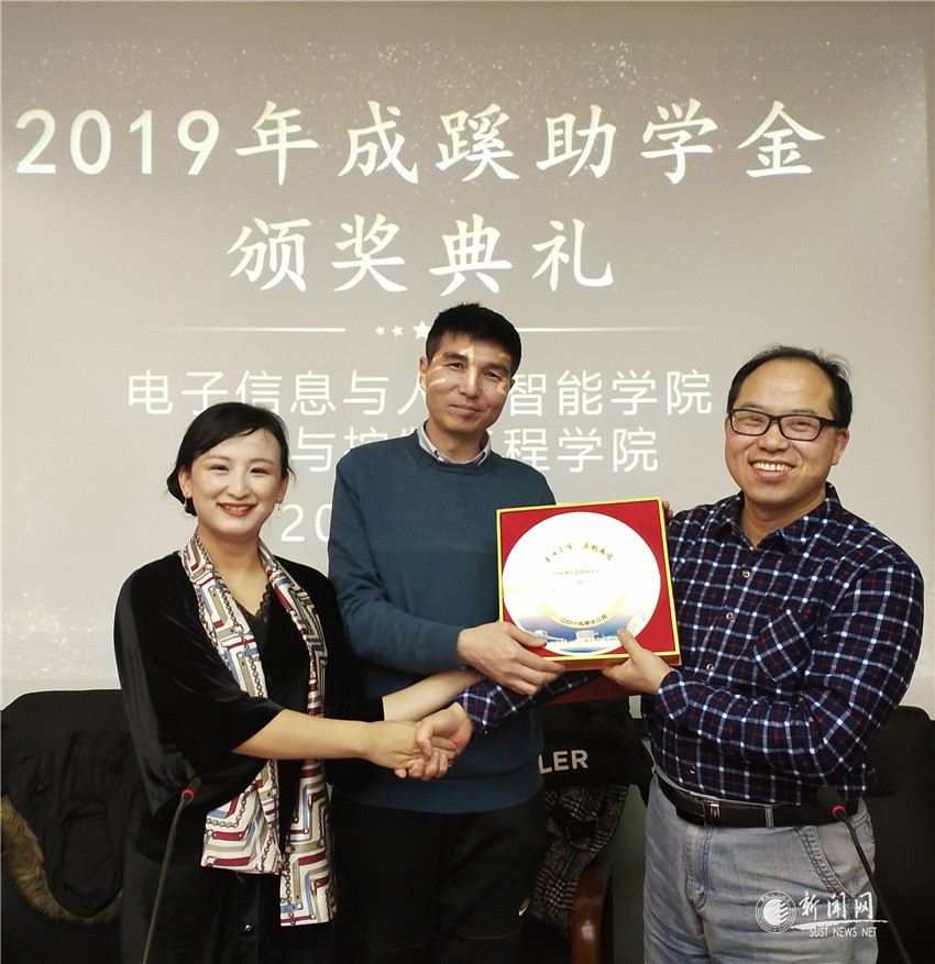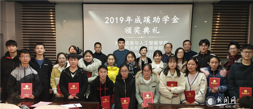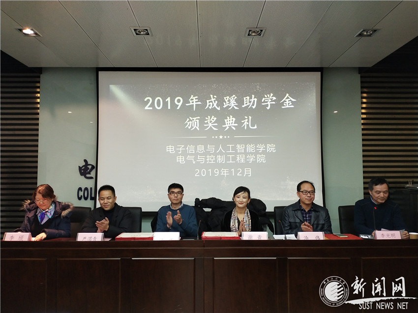 12月27日上午,電氣與控制工程學院、電子信息與人工智能學院在實驗樓2A206報告廳聯(lián)合舉行2019年“成蹊助學金”頒獎儀式。上海成蹊信息科技有限公司(以下簡稱“成蹊公司”)財務總監(jiān)陳泥、高級人事經(jīng)理謝青、電控學院副院長(主持工作)湯偉、電智學院黨委副書記嚴渭青、陜西科技大學電信校友會秘書長李光明、電智學院物聯(lián)網(wǎng)工程專業(yè)負責人李頎出席頒獎儀式,頒獎儀式由李光明主持。