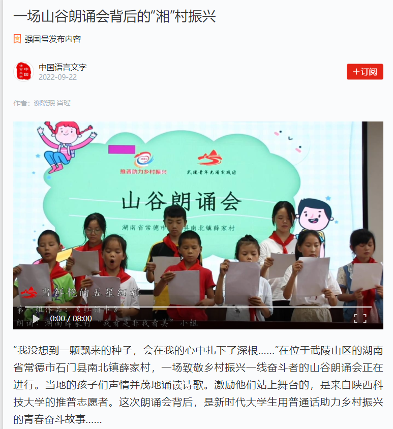近日,學習強國報道我校推普志愿者用普通話助力鄉(xiāng)村振興的青春奮斗故事。