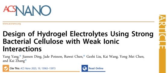 近期,我校輕工科學(xué)與工程學(xué)院(柔性電子學(xué)院)陳詠梅教授團隊楊洋副教授課題組聚焦生物質(zhì)資源高值化利用,在生物質(zhì)基凝膠電解質(zhì)領(lǐng)域取得重要進展,相關(guān)成果在ACS Energy Letters、ACS Nano上發(fā)表。