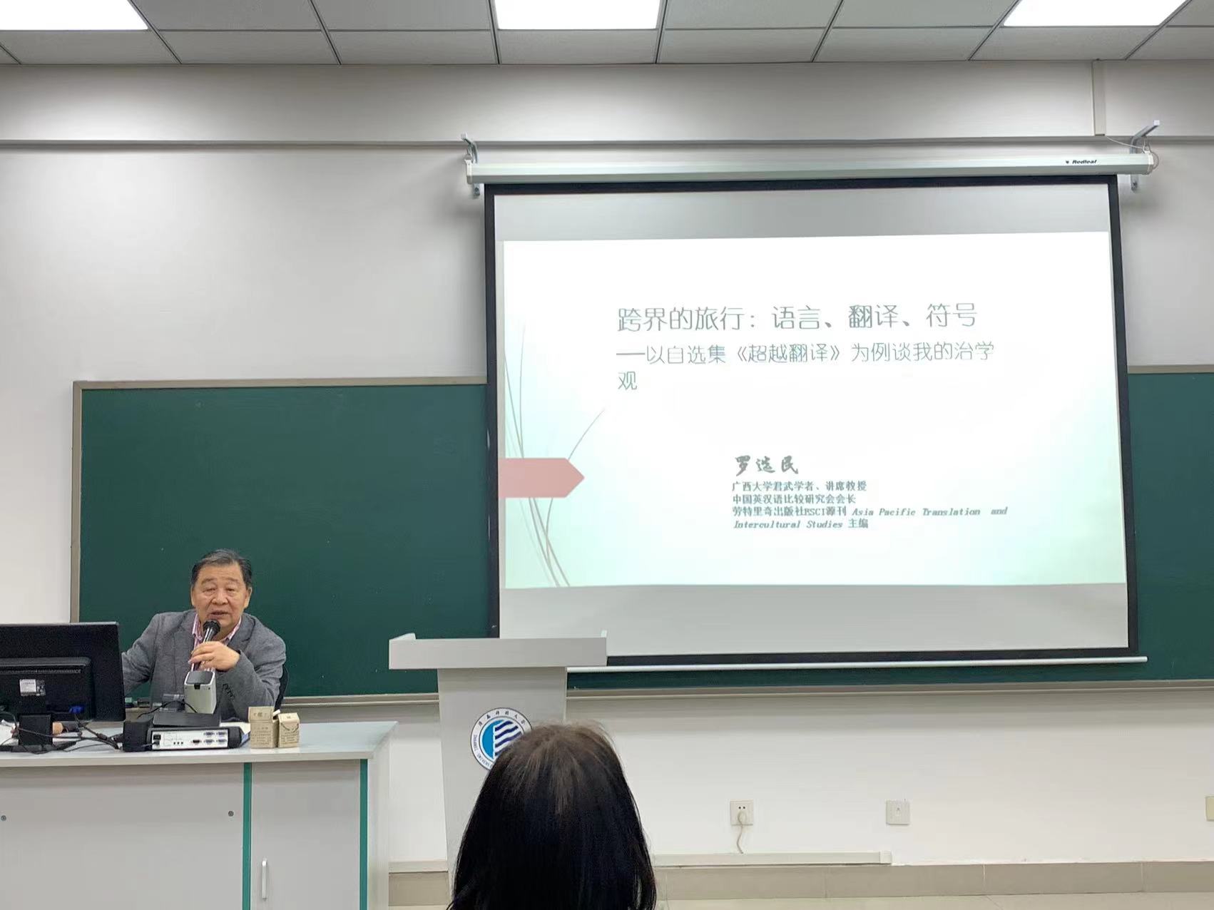 5月25日,廣西大學(xué)武君學(xué)者、博士生導(dǎo)師羅選民教授應(yīng)我校文理學(xué)院邀請,為全體MTI學(xué)生和外語教師做了主題為“跨界的旅行:語言、翻譯、符號(hào)——以自選集《超越翻譯》為例談?wù)勎业闹螌W(xué)觀”的學(xué)術(shù)報(bào)告,拉開了我校5月26-28日即將承辦的語言服務(wù)研究國際學(xué)術(shù)會(huì)議的序幕,報(bào)告由文理學(xué)院外語學(xué)科特聘教授司顯柱主持。