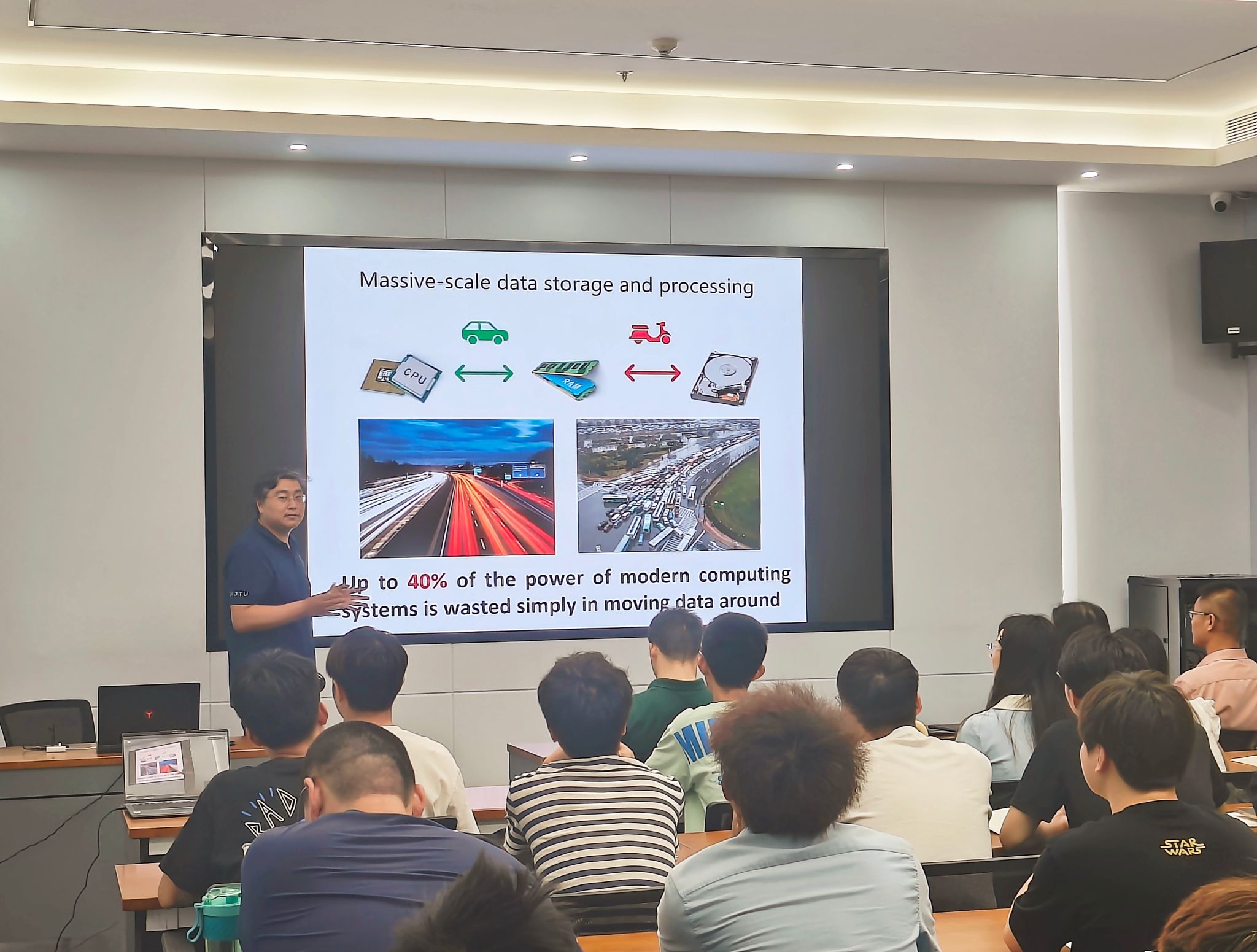 張偉教授長期從事相變與非晶材料方面的研究,在相變存儲器與類腦計算的材料機理與制備工藝方面取得重要進展。在此次報告中,張偉教授首先從相變存儲材料的材料學基礎出發(fā),詳細介紹了相變材料的結晶化與非晶化機理,提出其在數(shù)據(jù)存儲、通用存儲器、神經(jīng)元計算以及人工智能硬件發(fā)展方面的核心作用,并從材料設計的角度指出了相變存儲芯片工業(yè)化過程中尚需解決的關鍵問題。此外,張偉教授針對青年學者在高水平論文寫作方面的問題與困惑,以自身寫作經(jīng)驗分享了寫作特點和寫作范式,并結合具體示例論文闡述了寫作的思路、存在問題和解決方法。最后在現(xiàn)場提問和交流環(huán)節(jié)中張偉教授為學院從事科學研究的學生答疑解惑并提出了許多中肯的建議。