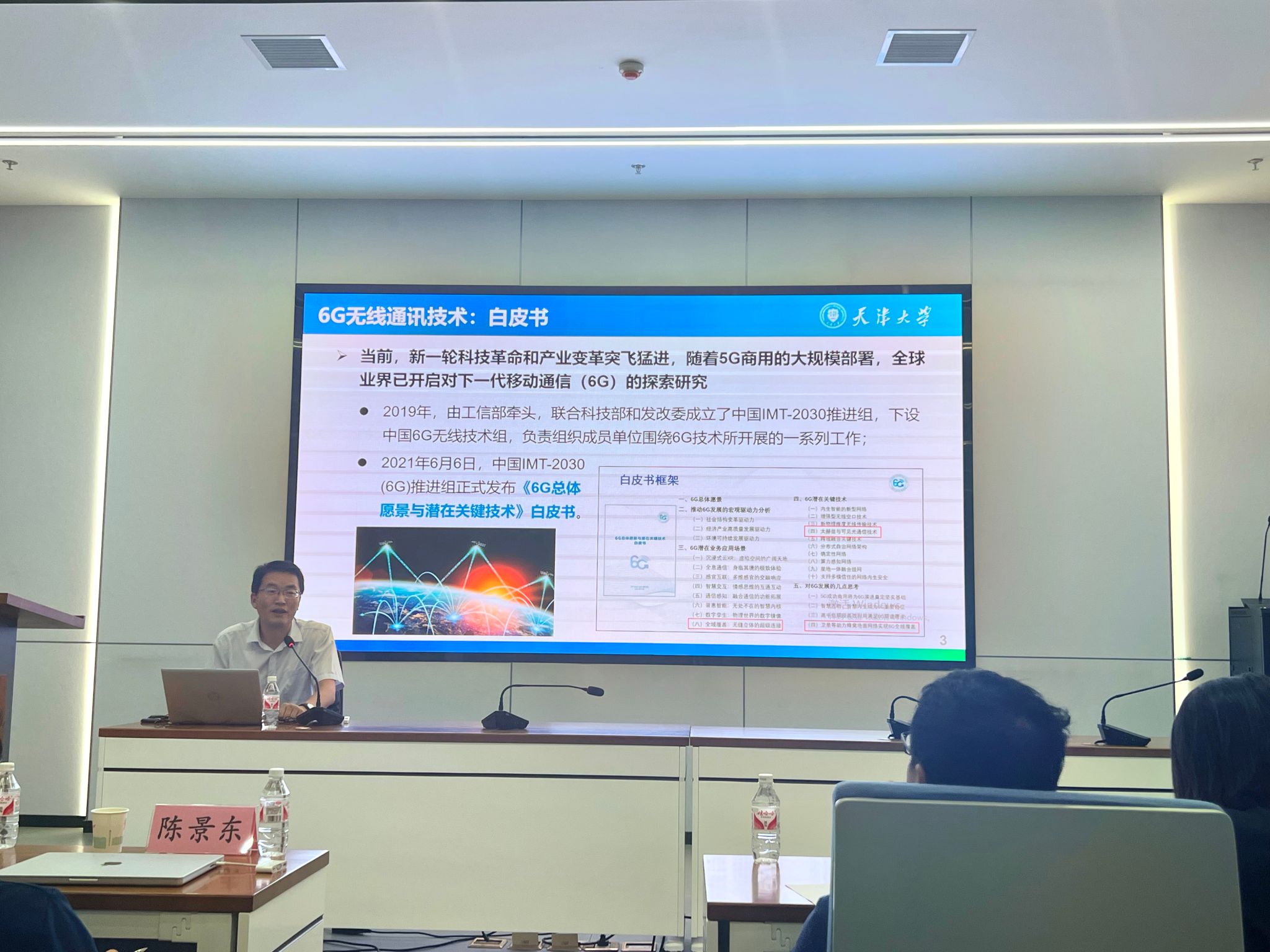 隨著人們對(duì)通信吞吐量、通信時(shí)延的要求越來(lái)越高,目前的通信技術(shù)越來(lái)越難以滿足要求。馬凱學(xué)教授首先對(duì)無(wú)線通信的歷史做了簡(jiǎn)單地回顧,并指出未來(lái)5G/6G通信領(lǐng)域技術(shù)發(fā)展的方向是融合空天地海網(wǎng)絡(luò)實(shí)現(xiàn)全域高速無(wú)線互聯(lián),而其中一個(gè)重要的方向則是毫米波頻段的通信與感知融合。報(bào)告中,馬凱學(xué)教授結(jié)合上述主題,介紹了5G/6G無(wú)線通信的發(fā)展及衛(wèi)星驅(qū)動(dòng)的空天地網(wǎng)絡(luò)融合,聚焦硅基毫米波集成電路與系統(tǒng)技術(shù),并介紹了其團(tuán)隊(duì)的相關(guān)工作進(jìn)展,就該領(lǐng)域技術(shù)挑戰(zhàn)及未來(lái)趨勢(shì)進(jìn)行了深入探討。報(bào)告結(jié)束后,馬凱學(xué)教授對(duì)現(xiàn)場(chǎng)老師和學(xué)生的提問(wèn)作了熱情詳細(xì)地回答。